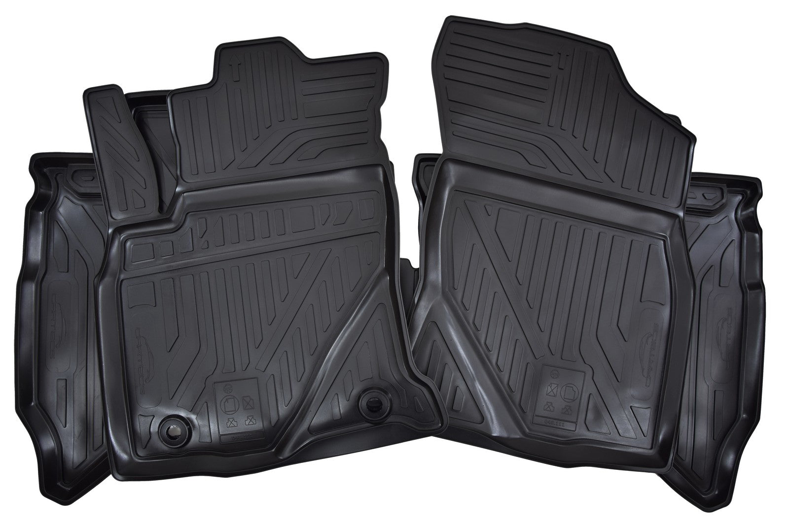 Covorase de cauciuc de calitate premium ce sunt concepute pentru fiecare brand si model auto in parte. Datorita marginilor ridicate, acestea retin apa, grasimi, ulei, murdarie sau nisip si protejeaza astfel tapiteria interioara a masinii. Pe partea soferului, covorasul de sub pedale este intarit.