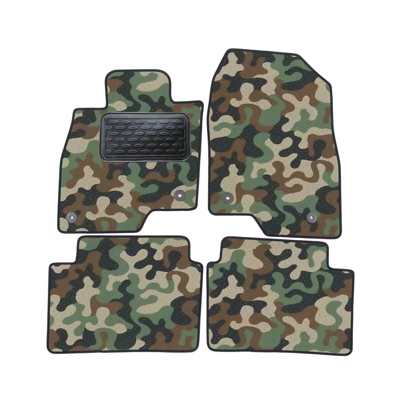 Covorasele din velur in stil Army au un design unic si sunt alegerea potrivita pentru iubitorii uniformei militare, a celor carora le place modelul camuflaj, a vanatorilor, pescarilor si nu numai. Datorita calitatii excelente a materialelor utilizate, covorasele din velur isi mentin o forma constanta si proprietatile de izolare fonica. Covorasele auto sunt formate din doua straturi, partea superioara din fibra de velur iar cea inferioara din material impermeabil și antiderapant.