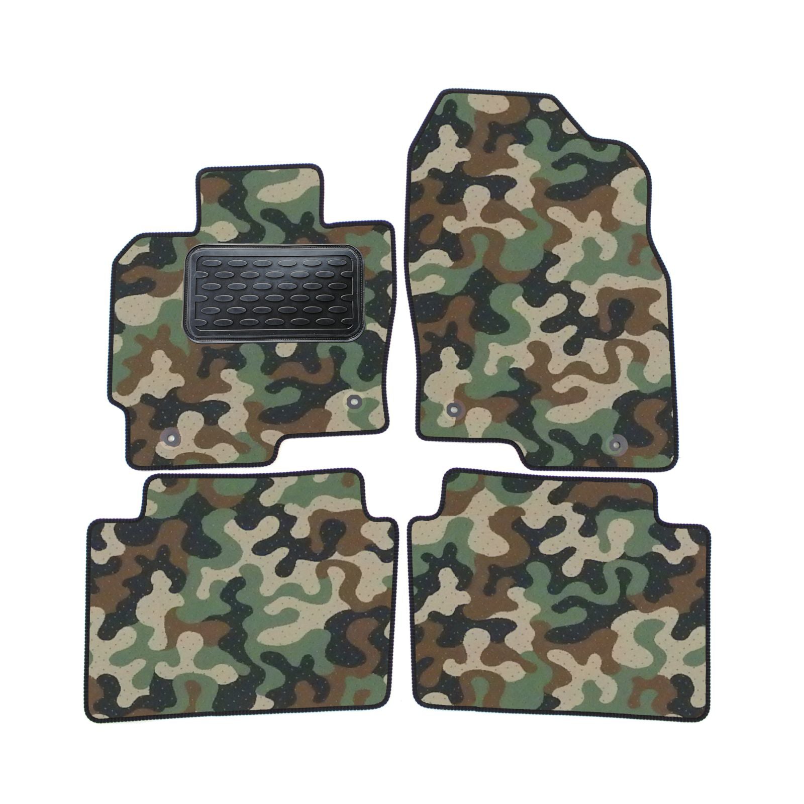Covorasele din velur in stil Army au un design unic si sunt alegerea potrivita pentru iubitorii uniformei militare, a celor carora le place modelul camuflaj, a vanatorilor, pescarilor si nu numai. Datorita calitatii excelente a materialelor utilizate, covorasele din velur isi mentin o forma constanta si proprietatile de izolare fonica. Covorasele auto sunt formate din doua straturi, partea superioara din fibra de velur iar cea inferioara din material impermeabil și antiderapant.