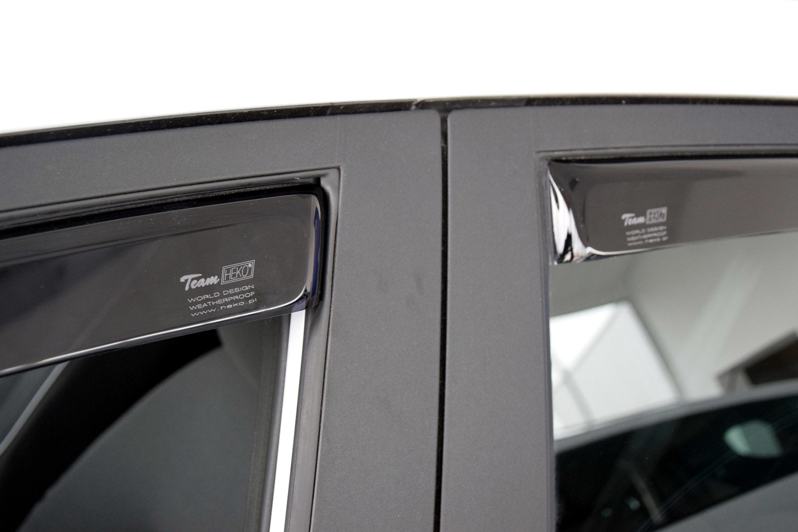 Deflectoarele de aer pentru geamuri sunt un accesoriu ce ofera un plus de utilitate masinii dumneavoastra dar in acelasi timp imbunatatesc design-ul acesteia, oferindu-i un aspect mult mai placut. Acestea asigura circulatia naturala a aerului in interiorul vehiculului, astfel incat geamurile pot fi intredeschise pe timp de ploaie, ninsoare sau ceata. Acestea protejeaza soferul de efectele neplacute ale fluxului de aer in autovehicul atunci cand geamul este deschis. Deflectoarele sunt fabricate din plastic de culoare fumurie cu o transmisie redusa a radiatiei UV. Heko Team este proncipalul producator de deflectoare de aer din Polonia pentru autoturisme, ce are clienti in intreaga lume. Caracteristici: