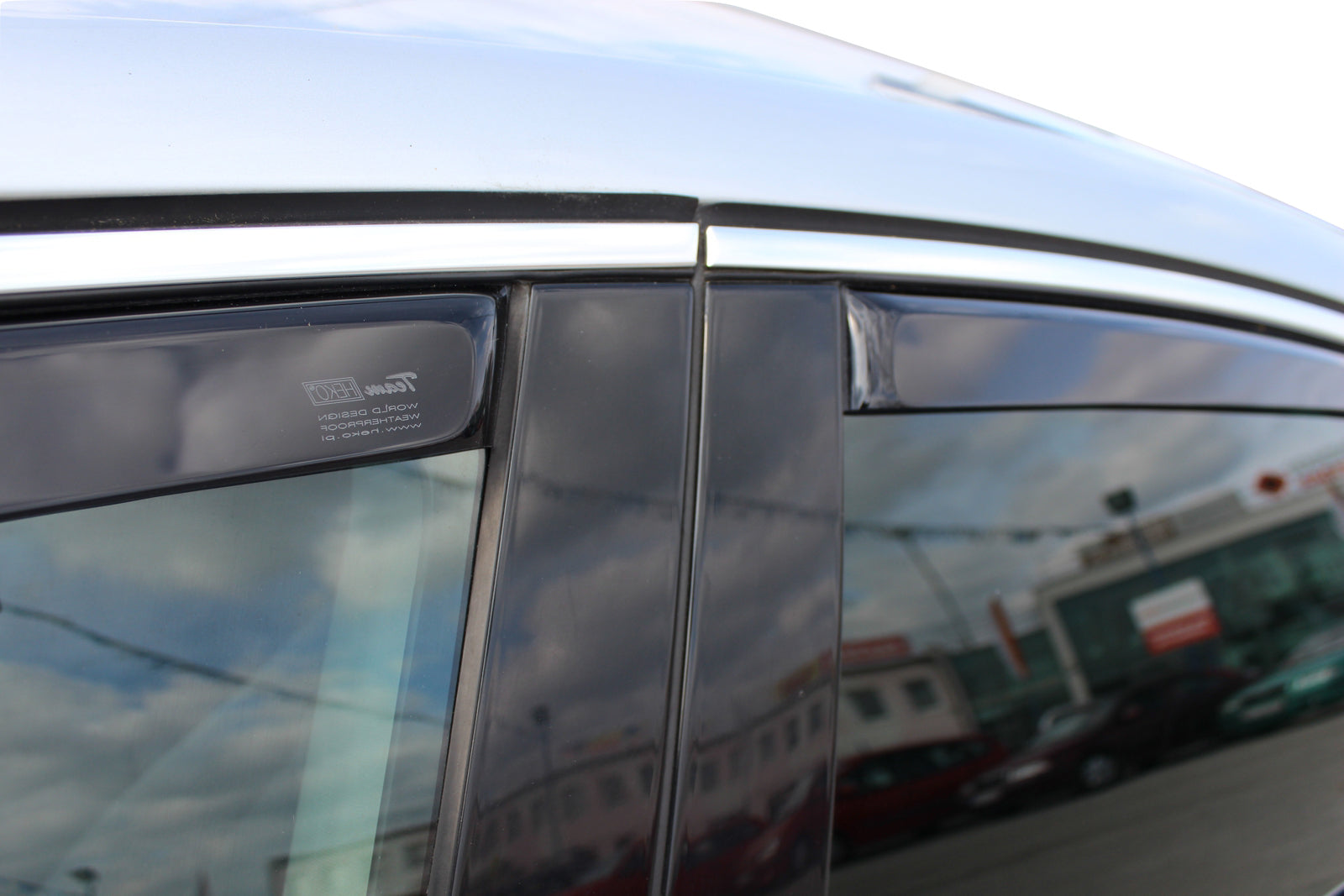 Deflectoarele de aer pentru geamuri sunt un accesoriu ce ofera un plus de utilitate masinii dumneavoastra dar in acelasi timp imbunatatesc design-ul acesteia, oferindu-i un aspect mult mai placut. Acestea asigura circulatia naturala a aerului in interiorul vehiculului, astfel incat geamurile pot fi intredeschise pe timp de ploaie, ninsoare sau ceata. Acestea protejeaza soferul de efectele neplacute ale fluxului de aer in autovehicul atunci cand geamul este deschis. Deflectoarele sunt fabricate din plastic de culoare fumurie cu o transmisie redusa a radiatiei UV. Heko Team este proncipalul producator de deflectoare de aer din Polonia pentru autoturisme, ce are clienti in intreaga lume. Caracteristici:
