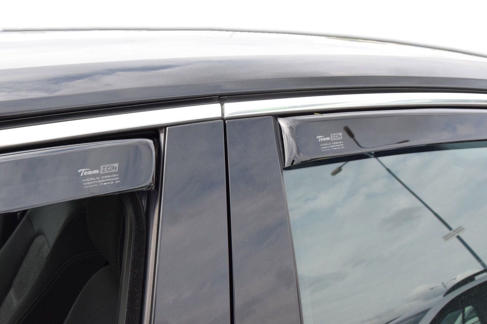Deflectoarele de aer pentru geamuri sunt un accesoriu ce ofera un plus de utilitate masinii dumneavoastra dar in acelasi timp imbunatatesc design-ul acesteia, oferindu-i un aspect mult mai placut. Acestea asigura circulatia naturala a aerului in interiorul vehiculului, astfel incat geamurile pot fi intredeschise pe timp de ploaie, ninsoare sau ceata. Acestea protejeaza soferul de efectele neplacute ale fluxului de aer in autovehicul atunci cand geamul este deschis. Deflectoarele sunt fabricate din plastic de culoare fumurie cu o transmisie redusa a radiatiei UV. Heko Team este proncipalul producator de deflectoare de aer din Polonia pentru autoturisme, ce are clienti in intreaga lume.