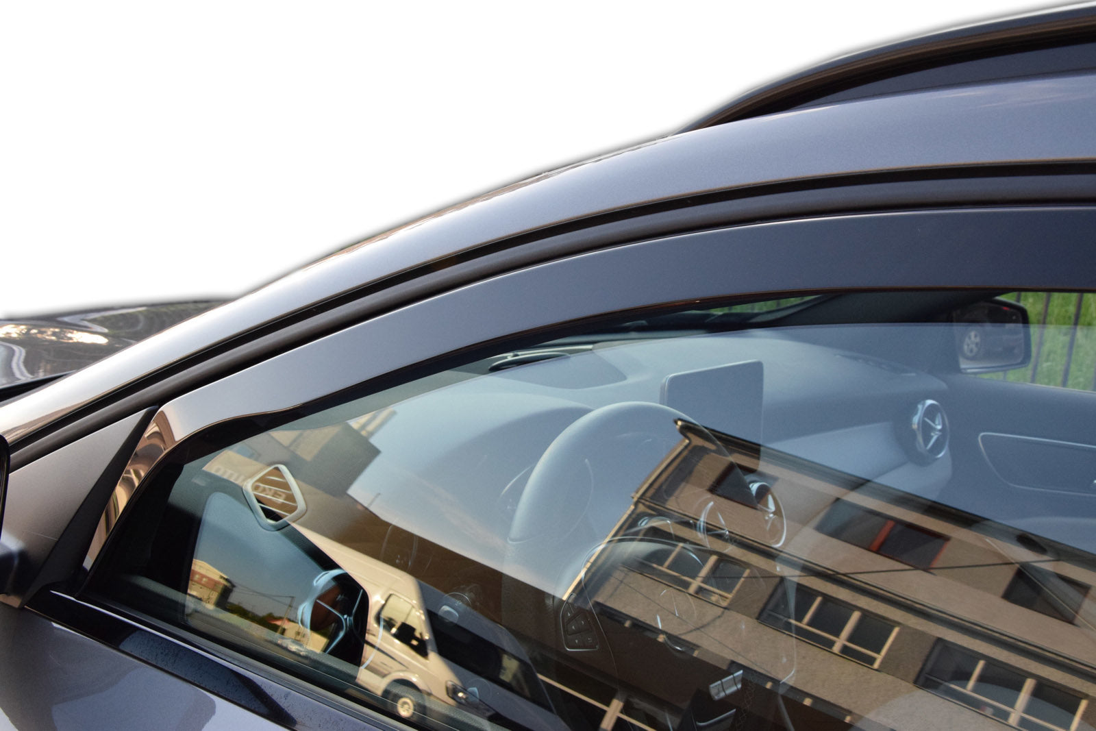 Deflectoarele de aer pentru geamuri sunt un accesoriu ce ofera un plus de utilitate masinii dumneavoastra dar in acelasi timp imbunatatesc design-ul acesteia, oferindu-i un aspect mult mai placut. Acestea asigura circulatia naturala a aerului in interiorul vehiculului, astfel incat geamurile pot fi intredeschise pe timp de ploaie, ninsoare sau ceata. Acestea protejeaza soferul de efectele neplacute ale fluxului de aer in autovehicul atunci cand geamul este deschis. Deflectoarele sunt fabricate din plastic de culoare fumurie cu o transmisie redusa a radiatiei UV. Heko Team este proncipalul producator de deflectoare de aer din Polonia pentru autoturisme, ce are clienti in intreaga lume.